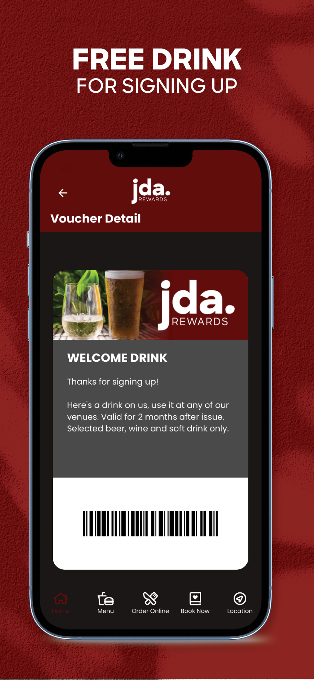 Sign up now to start receiving benefits on the JDA Rewards app and receive a FREE drink upon sign up. If you’re already a member, scan your app at the till to access all Union Place Hotel member benefits including: